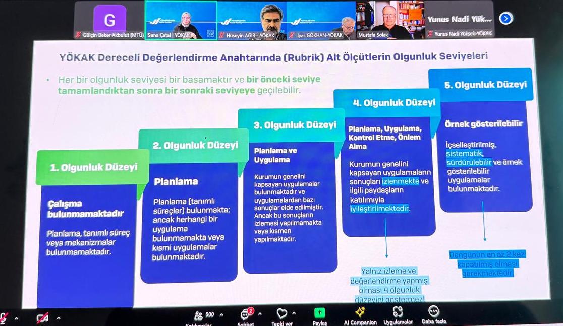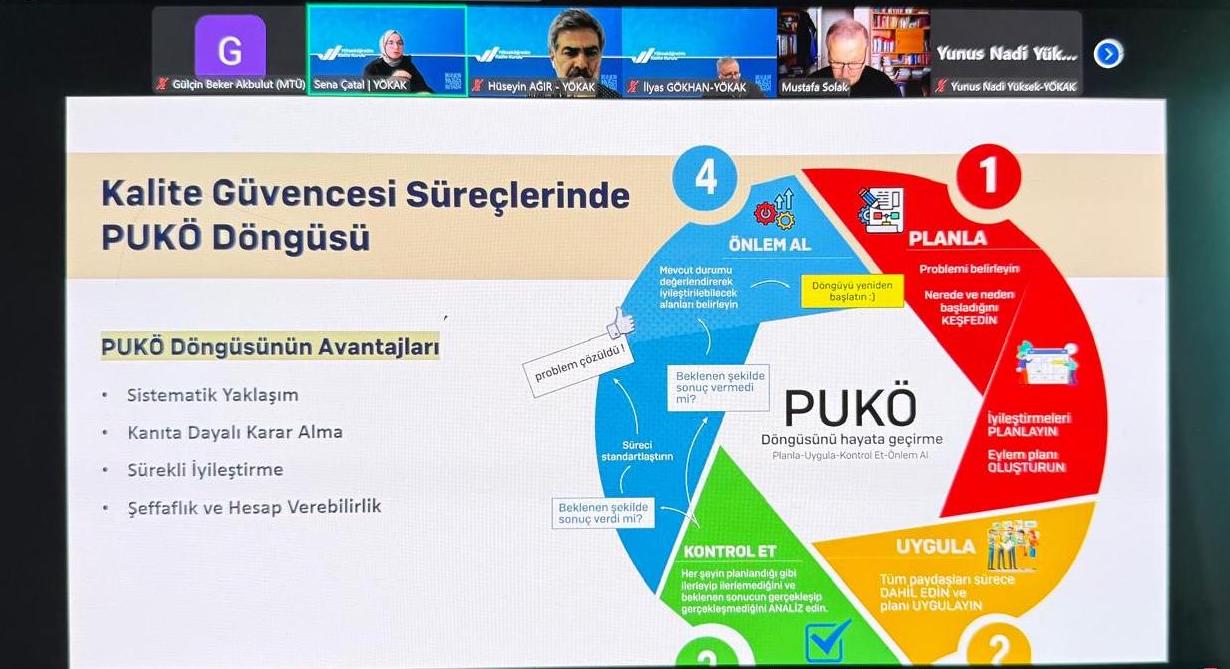 Toplantıya Üniversitemiz Kalite Koordinatörü Doç.Dr.Gülçin BEKER AKBULUT ve MTÜ Kalite Komisyonu Üyesi Dr.Öğr.Üyesi Eda FENDOĞLU yer aldı.
